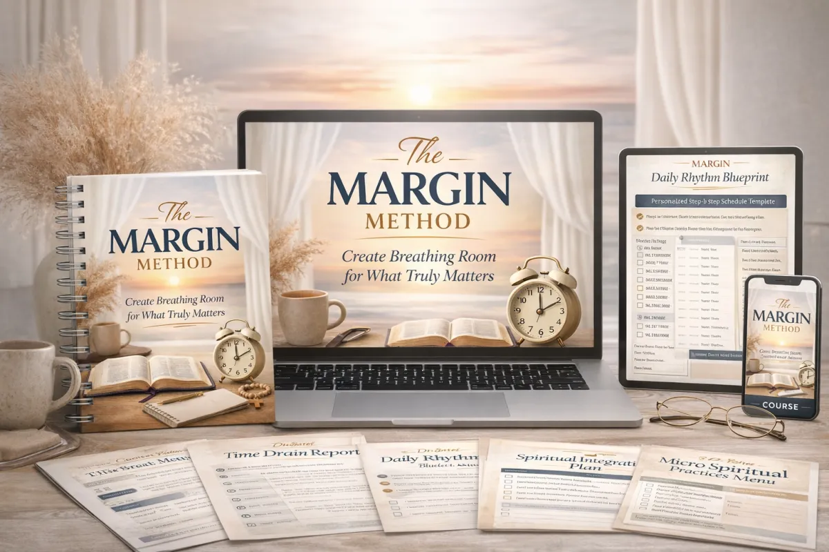 The Margin Method is a faith-centered system to help you reclaim time, reduce overwhelm, and build a sustainable daily rhythm that makes room for God — without guilt, perfectionism, or unrealistic schedules.